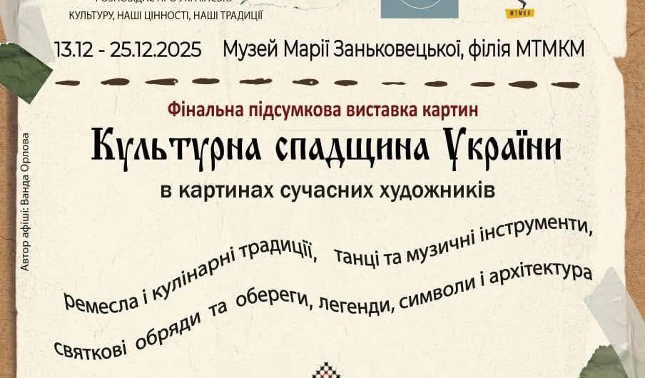 This event is the final exhibition of paintings from Wanda Orlova’s artistic project ‘Mosaic of Ukraine’s Heritage,’ which tells about Ukrainian culture, traditions, and values. The best paintings by contemporary Ukrainian artists who participated in exhibitions of this project during 2025 were selected for the exhibition on a competitive basis.