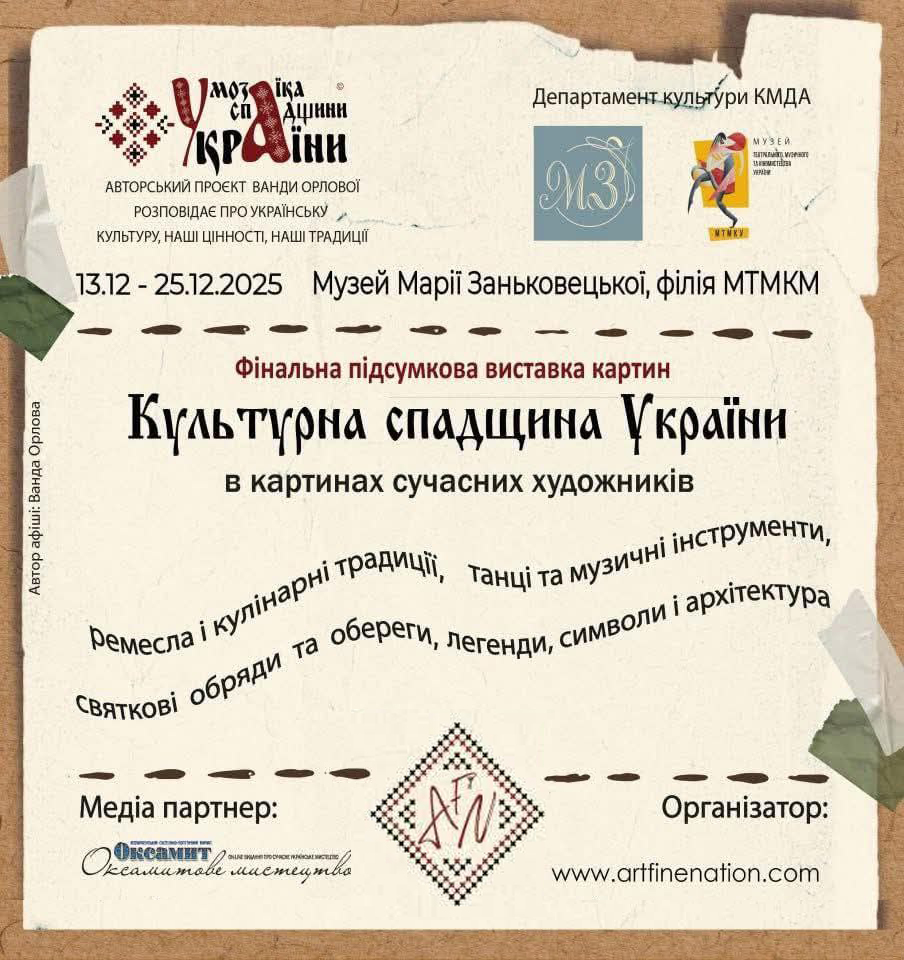 15 Дек , 2025On 13 December, the Maria Zankovetska Museum (Kyiv) hosted the grand opening of the exhibition of paintings entitled ‘The Cultural … Продолжить чтение The exhibition of paintings ‘The Cultural Heritage of Ukraine’